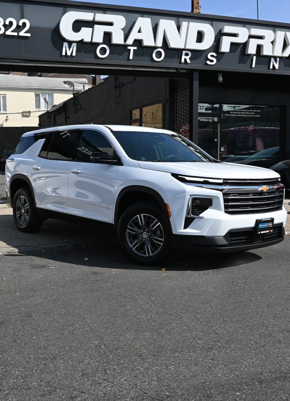 Lease the 2025 Chevrolet Traverse in white — a spacious and modern SUV designed for families, comfort, and everyday flexibility. Now available at Grand Prix Auto Center in Miami with flexible lease and financing options.
